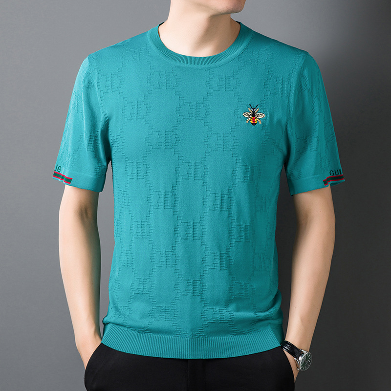 夏季薄款冰丝短袖t恤男潮牌新刺绣针织半袖夏装上衣高端男士体恤