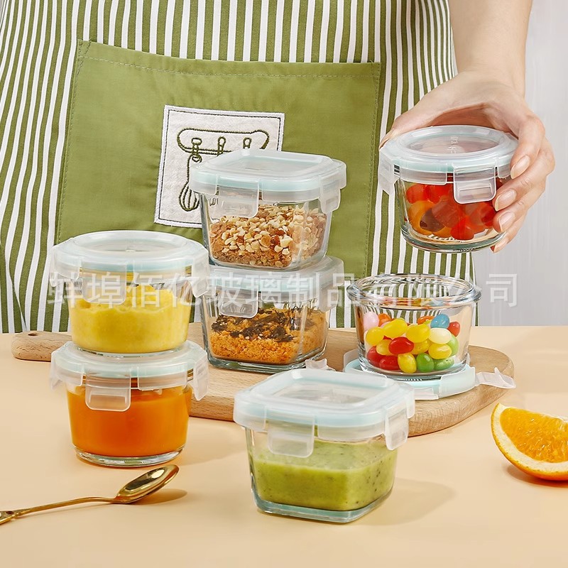 带扣辅食盒可蒸煮微波炉加热碗玻璃保鲜盒食品留样盒迷你小饭盒