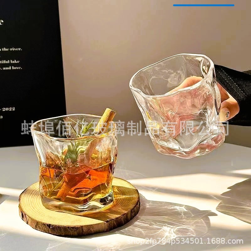 ins美式风扭扭杯冷饮果汁不规则玻璃杯洋酒啤酒威士忌杯家用褶皱