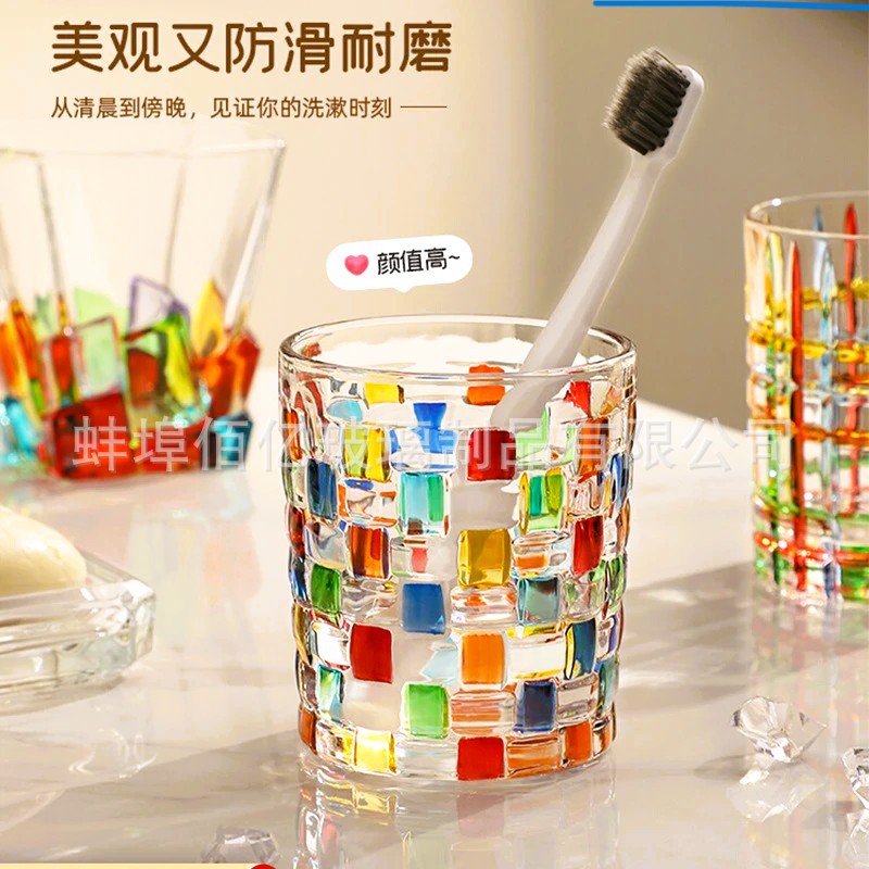 艺术高颜值牙刷杯刷牙杯家用漱口杯高级彩绘轻奢牙杯玻璃洗漱杯子