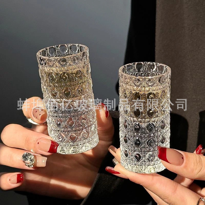 网红钻石w玻璃小酒杯洋酒杯高端精致一口杯微醺艺术迷你酒杯透明