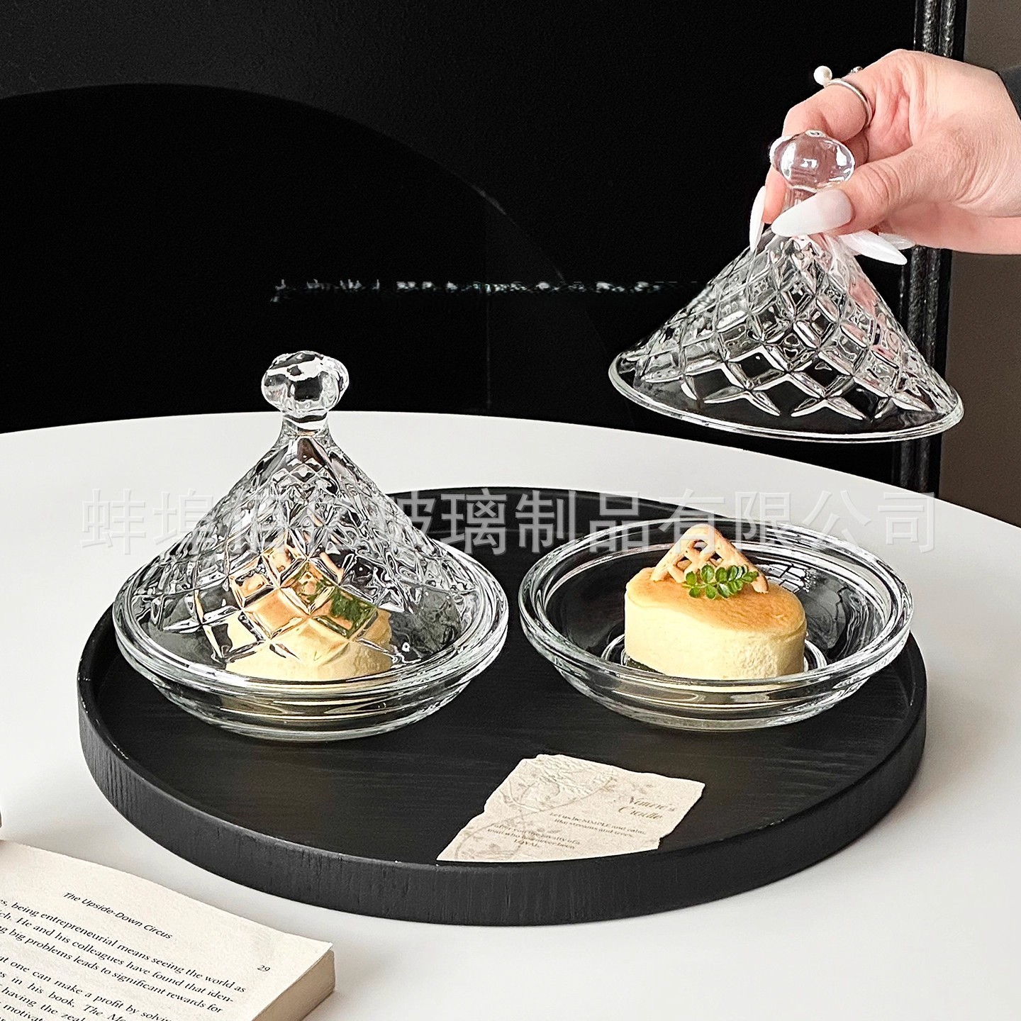 咖啡厅试吃盘商用蛋糕展示盘带盖玻璃品鉴甜品碟创意面包玻璃罩