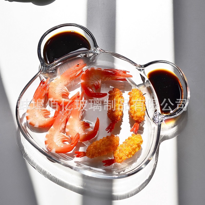 小熊玻璃果盘带醋碟饺子盘家用儿童面碗网红创意餐盘2024新款盘子