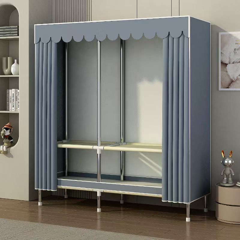 简易衣柜出租房卧室组装钢管钢架加固加粗加厚家居纯色布制衣柜