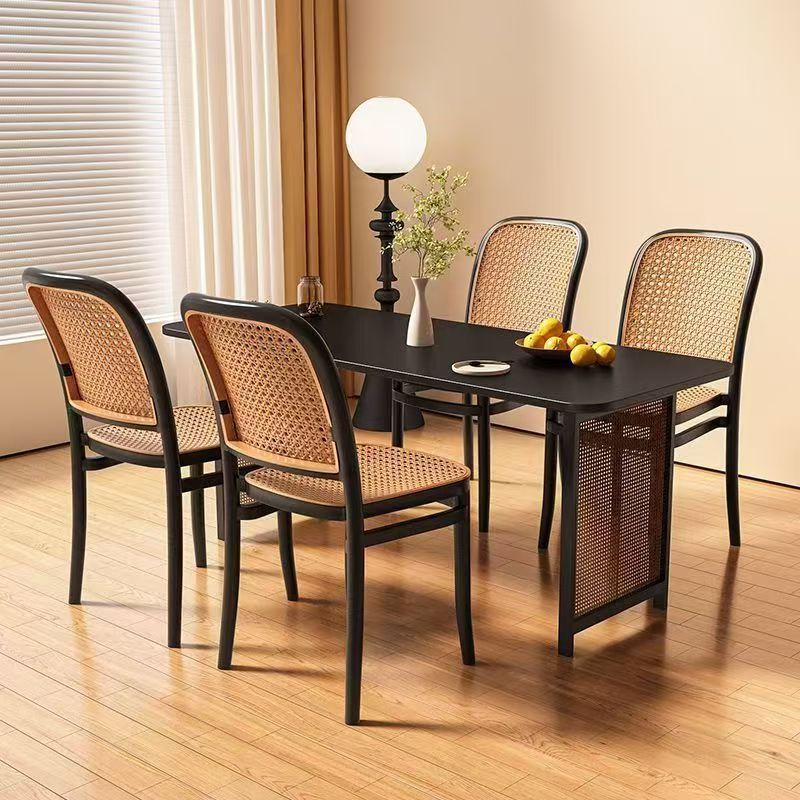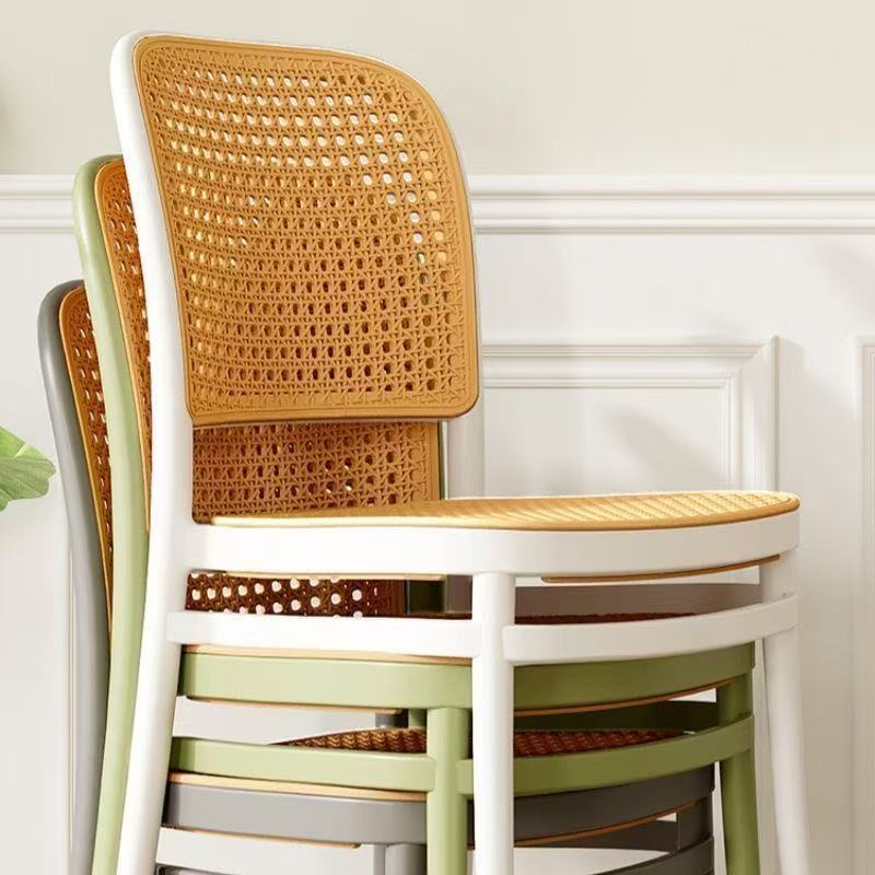 藤编塑料椅子北欧家用可叠放餐椅户外休闲靠背椅小户型扶手书桌椅