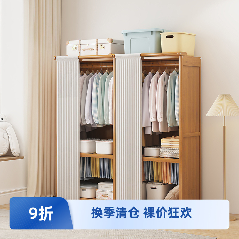 开放式衣柜出租房实木结实耐用经济型牛津布卧室大容量挂衣橱
