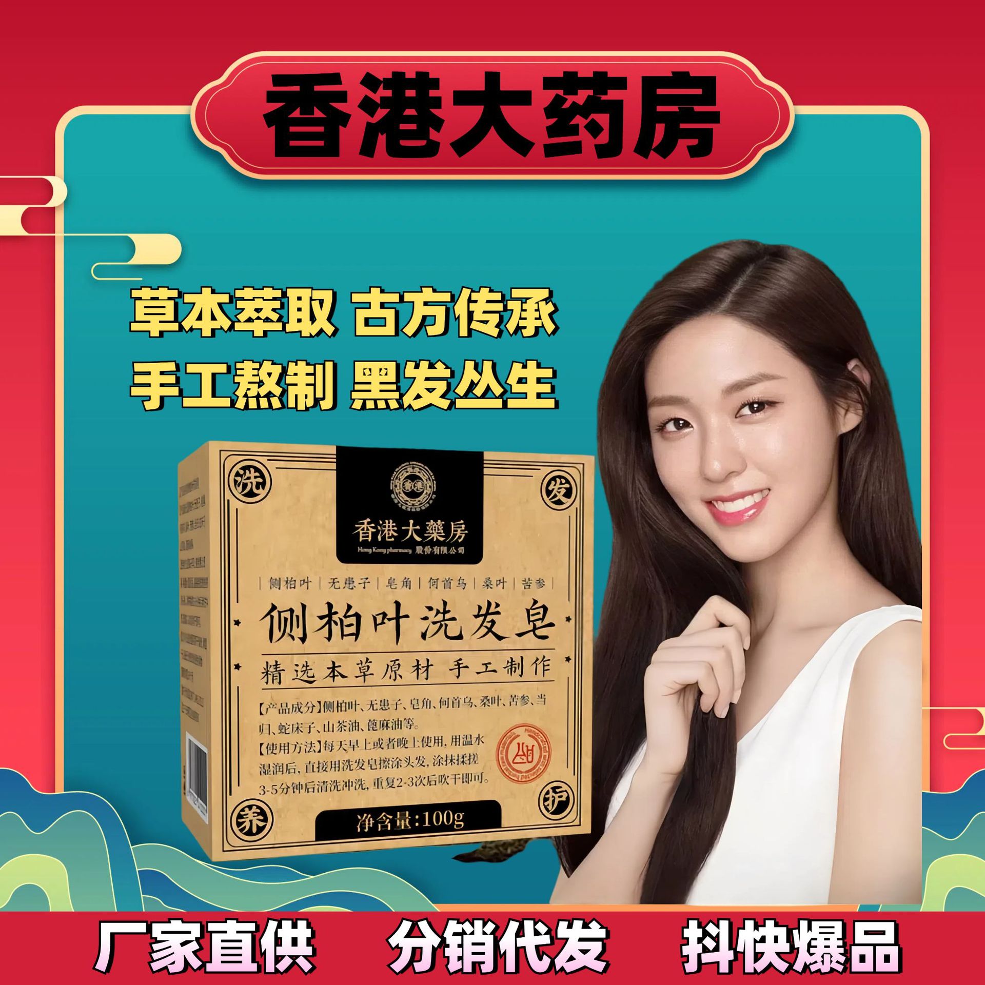 古方草本人参养发温和滋润精油皂手工侧柏叶洗发皂天然植物洗发水