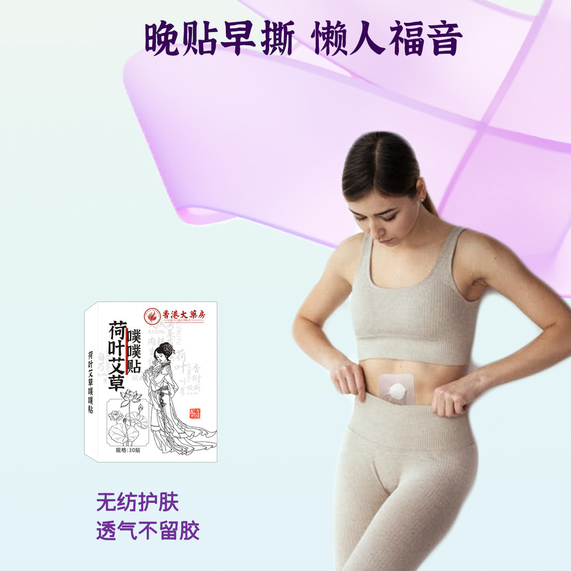 艾草荷叶噗噗贴陈艾肚脐贴神阙贴腹部通用贴暴汗陈艾绒草本贴