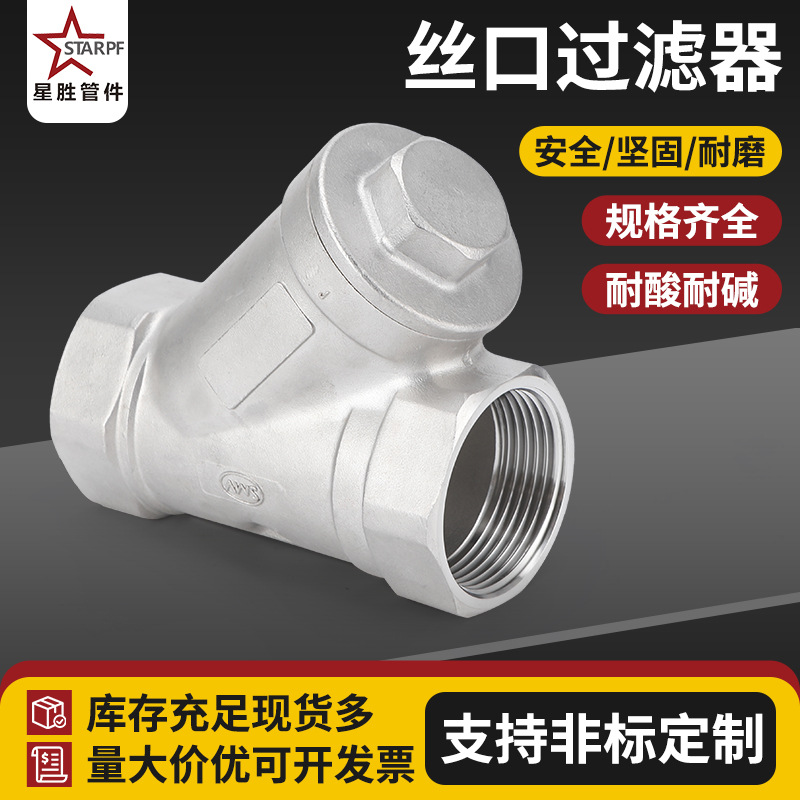 304/316不锈钢Y型丝扣过滤器6分内螺纹目网式管道过滤器DN40 50