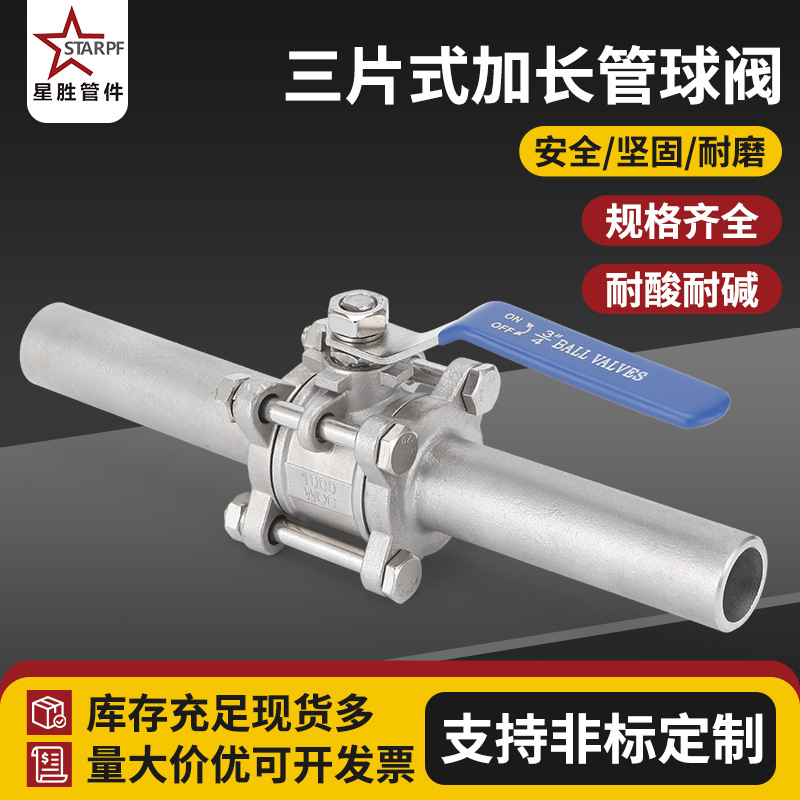 304不锈钢三片式加长管焊接球阀6分1寸 对焊延长管阀门开关DN32