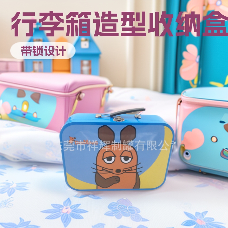 马口铁盒化妆品收纳手提箱 创意行李箱造型马口铁收纳盒便携防磕