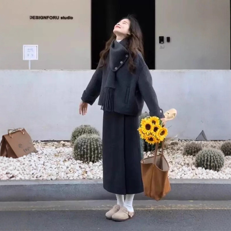 依号家 高级氛围感加厚毛呢外套女冬季新款气质时髦灰色呢子大衣