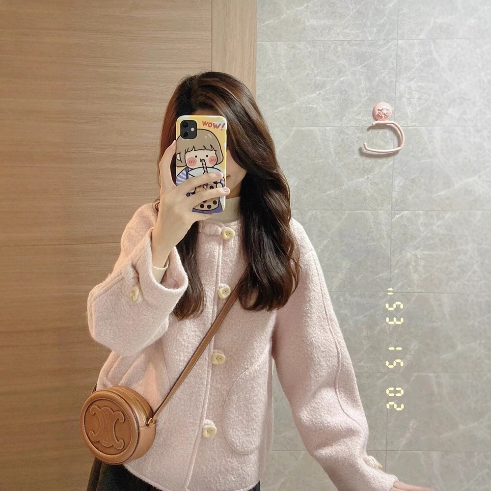 依号家法式摇粒绒粉色小香风外套女秋冬新款高级感超好看呢子大衣