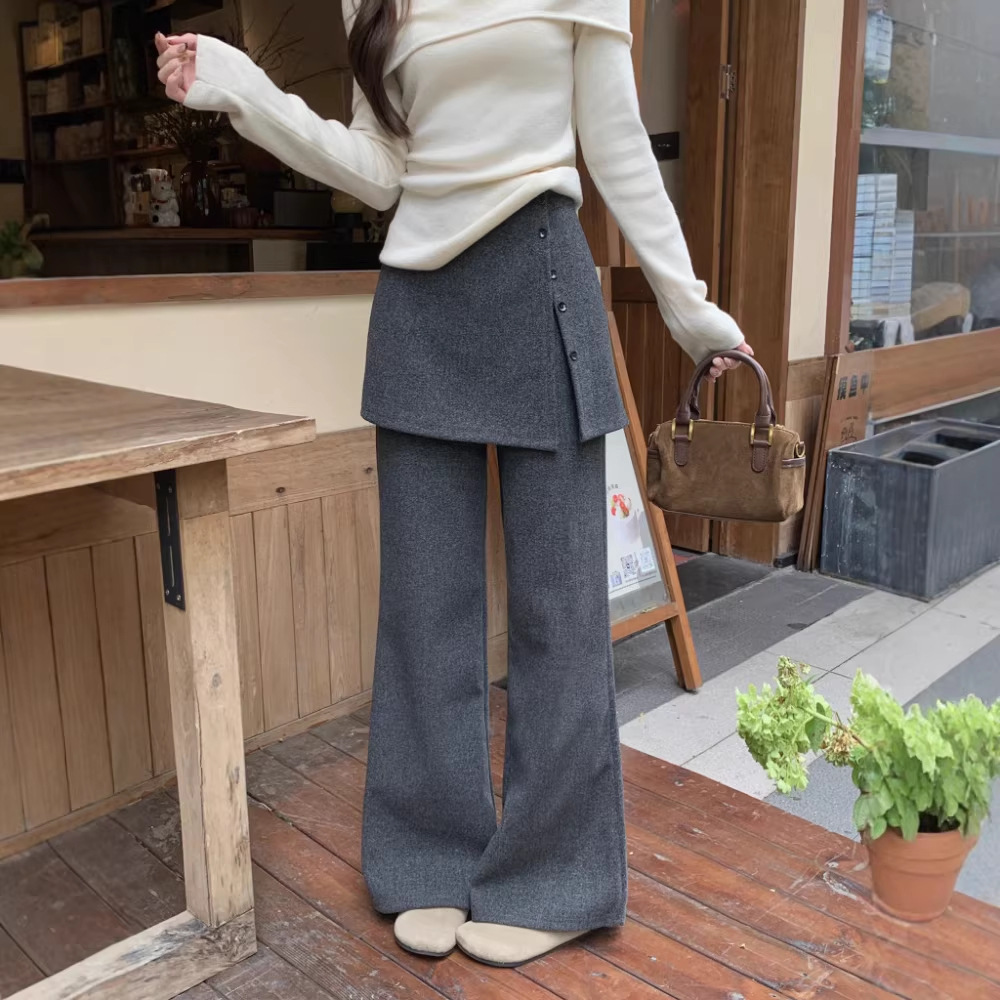 依号家2026春季装慵懒通勤风可拆卸屁帘休闲裤垂感灰色毛呢阔腿裤
