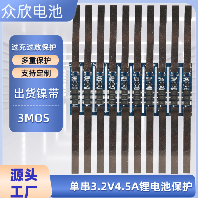 单串3.2V三元铁锂4.5A锂电池保护板太阳能路灯应急储能电源电芯