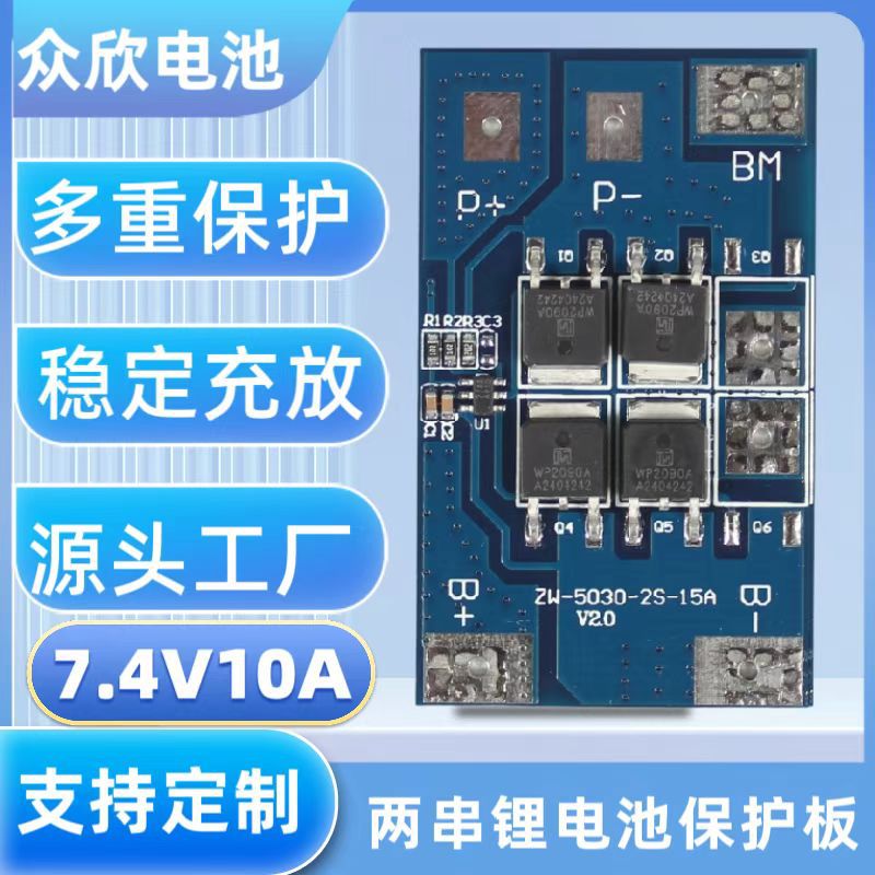 两串18650电池保护板7.4V10A太阳能路灯储能设备PCB锂电池线路板