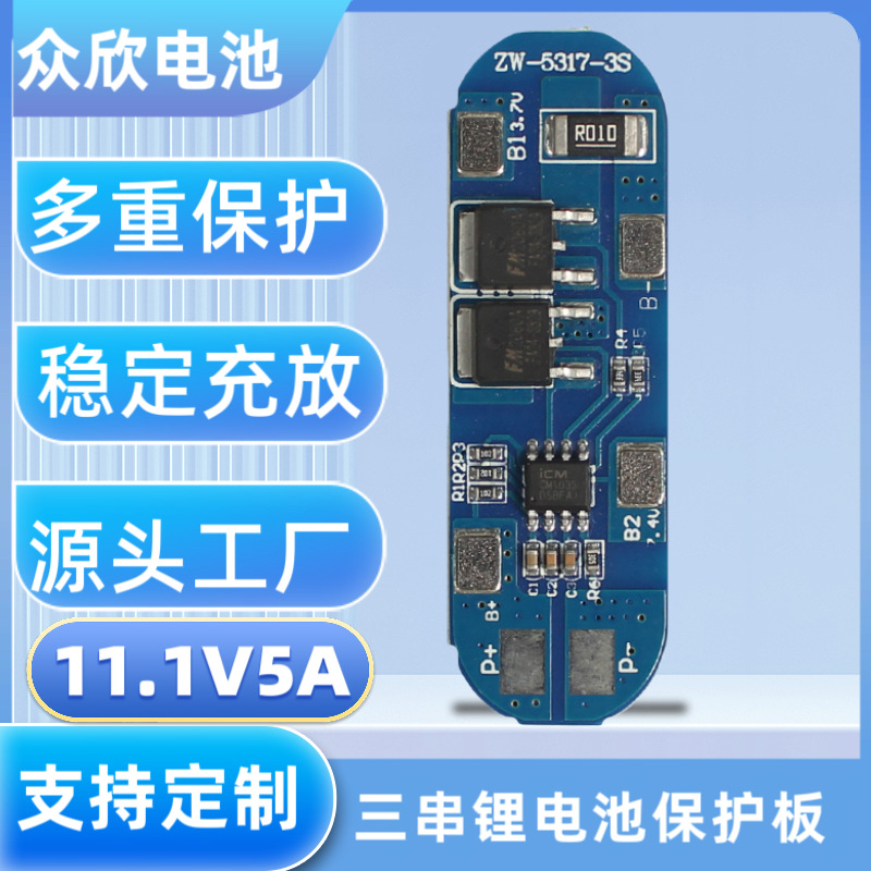 3串11.1V锂电池保护板三元18650圆柱电池6A太阳能储能设备线路板