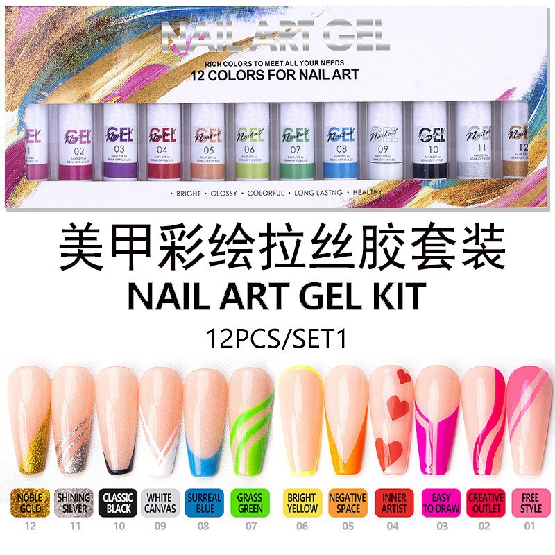 新款12色拉线胶套装3D彩绘甲油胶美甲拉丝胶勾线胶12色套装