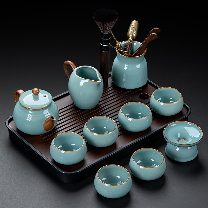 汝窑茶具茶壶茶杯高端天青陶瓷器具喝茶泡茶茶具套装新款高档