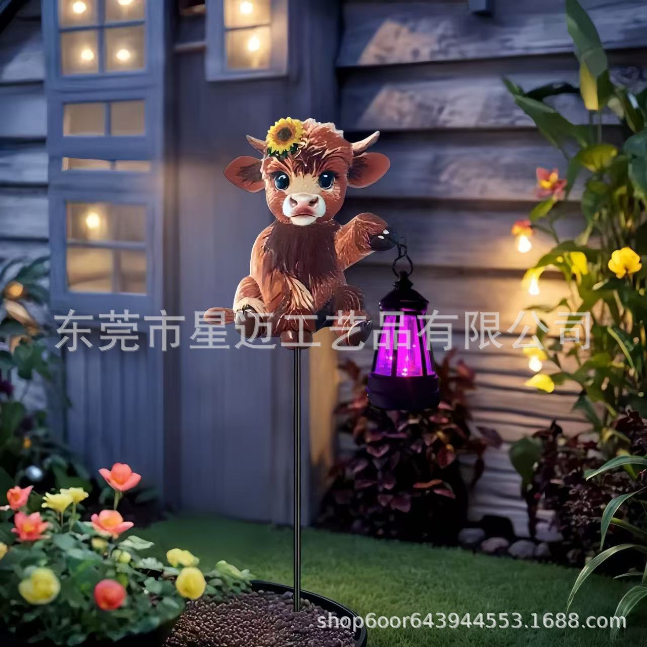 户外庭院景观小牛装饰草坪花盆动物摆件太阳能灯创意工艺品