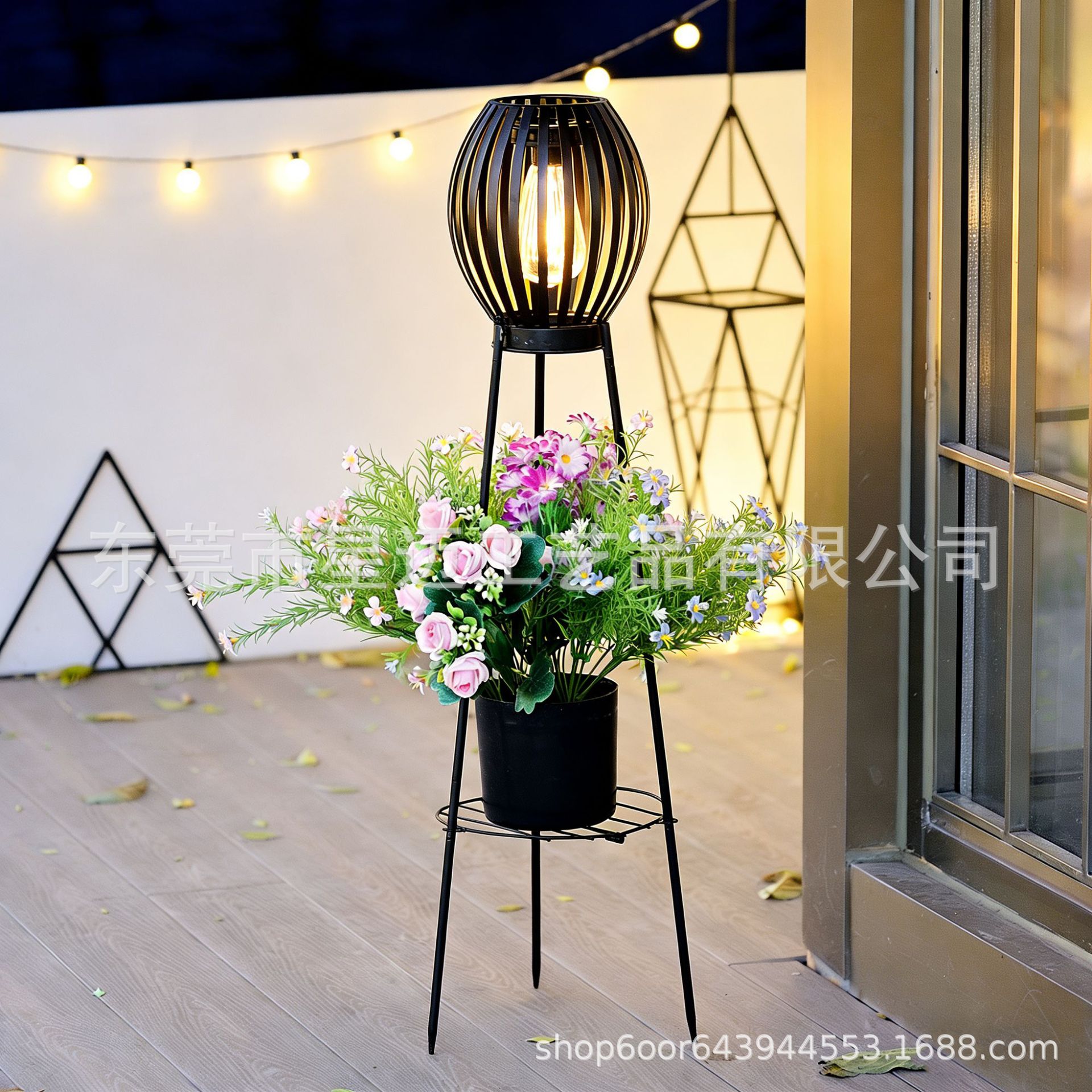 太阳能铁艺阳台落地一体花架户外庭院简约多层置物花架子跨境