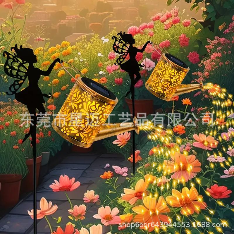 跨境太阳能仙女提壶灯 天使水壶灯花洒灯庭院景观灯铁艺镂空