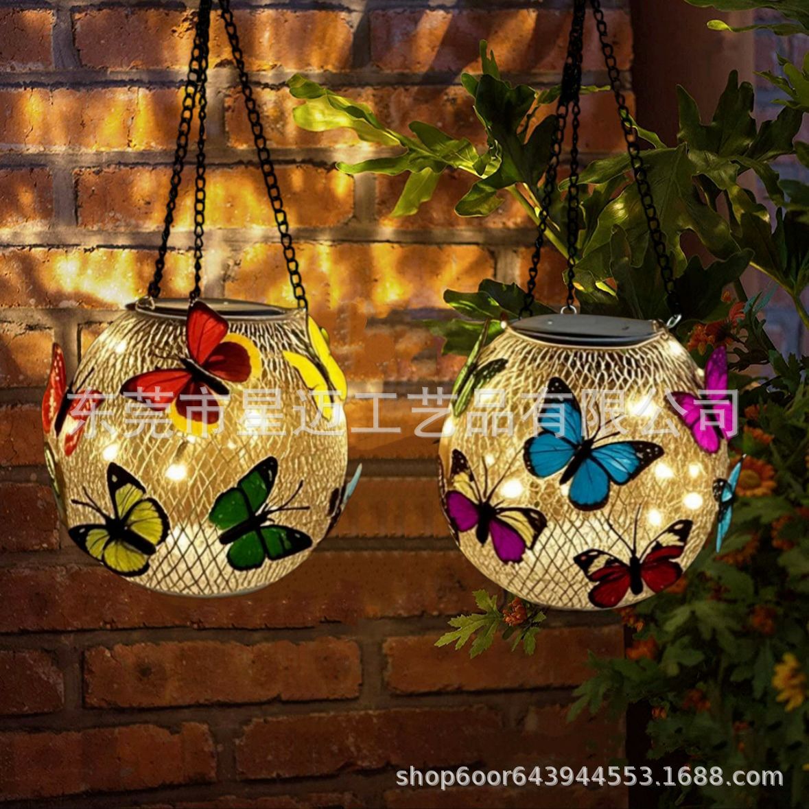 跨境新款花园太阳能蝴蝶吊灯户外防水庭院草坪别野装饰灯