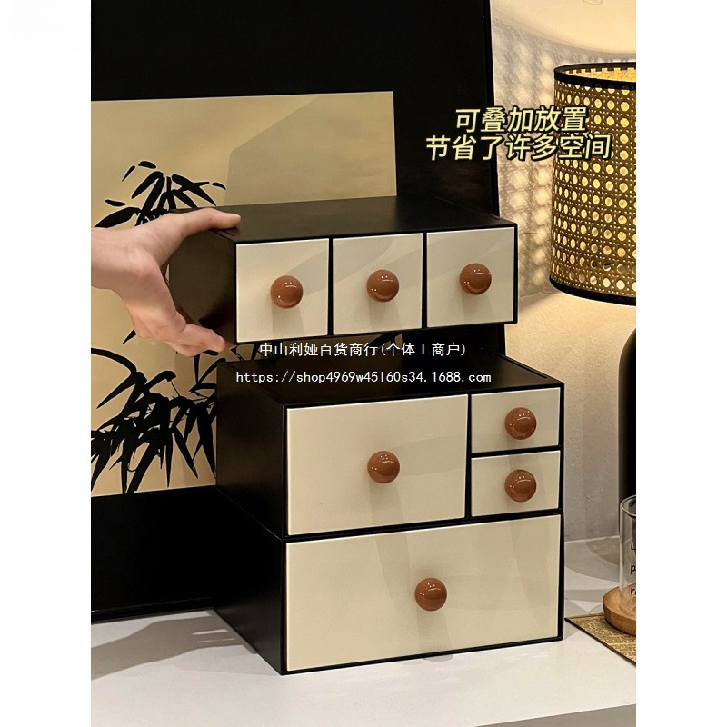 中古风抽屉式首饰收纳盒桌面复古入户玄关钥匙置物架收纳架塑料