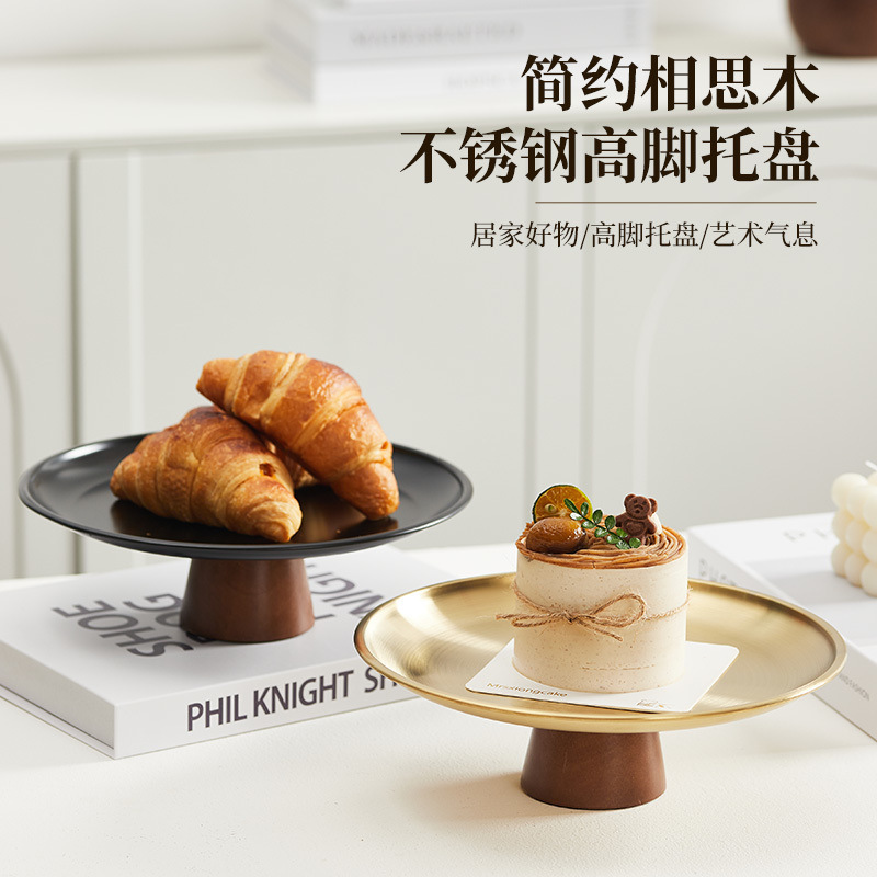 日式客厅零食水果摆放甜点不锈钢高脚托盘蛋糕盘点心盘糖果盘潮州