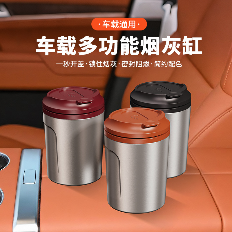 车载烟灰缸高端大气上档次汽车内饰带盖高级感