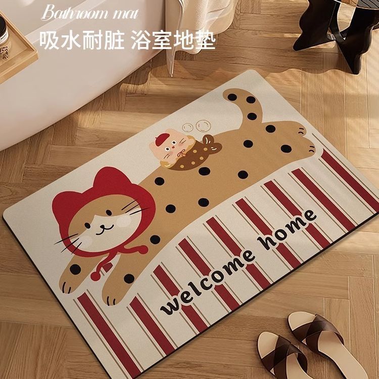 家用浴室地垫卡通家用吸水防滑脚垫洗手间门口耐脏易打理硅藻泥地