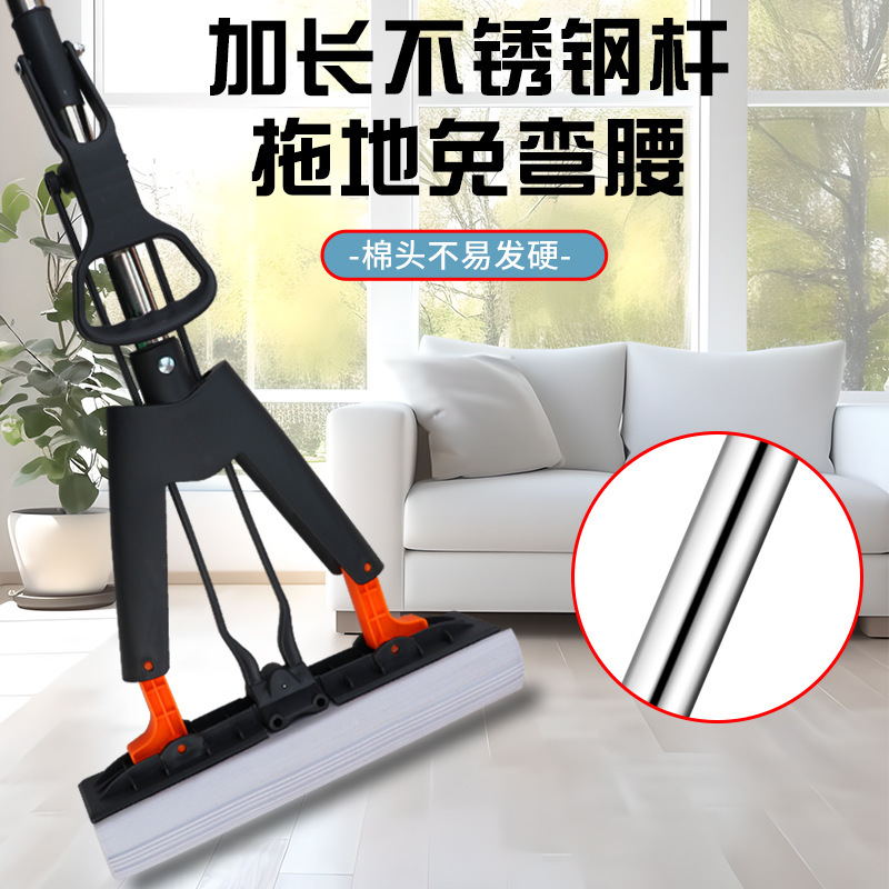 胶棉拖把厂家批发家用对折挤水海绵拖布地面一拖净免手洗懒人拖把