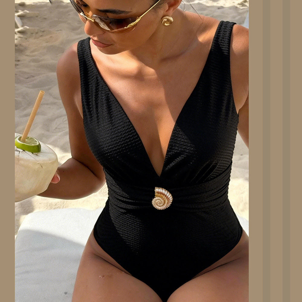 2026新款欧美亚马逊跨境纯色高级感连体泳衣深V性感女泳装游泳衣