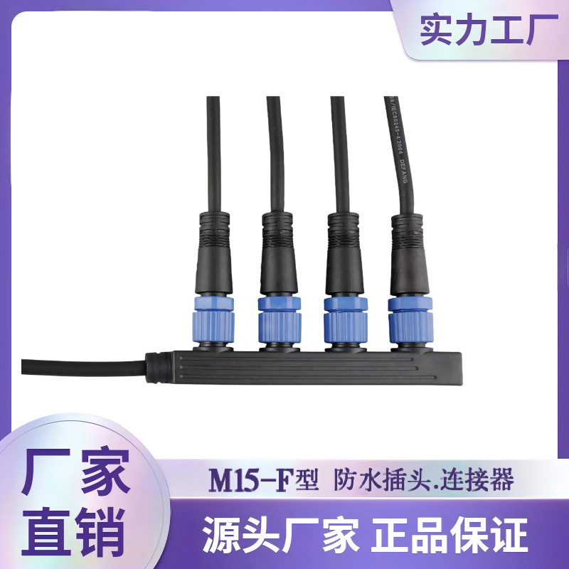 M15并联线F型一拖三防水连接器户外灯路灯模组LED对接插座接头