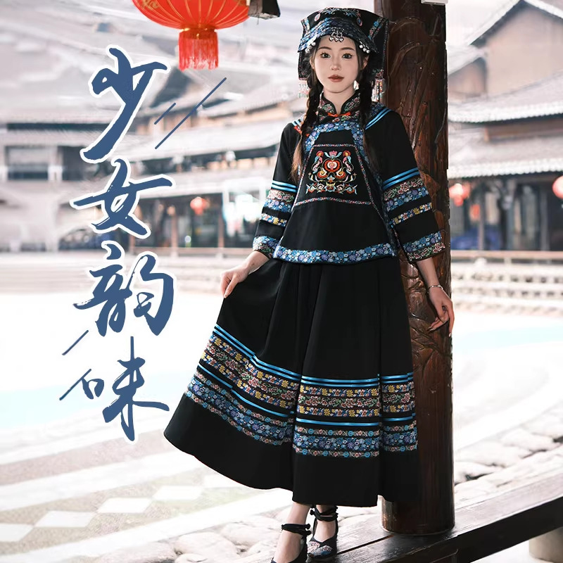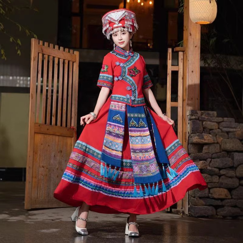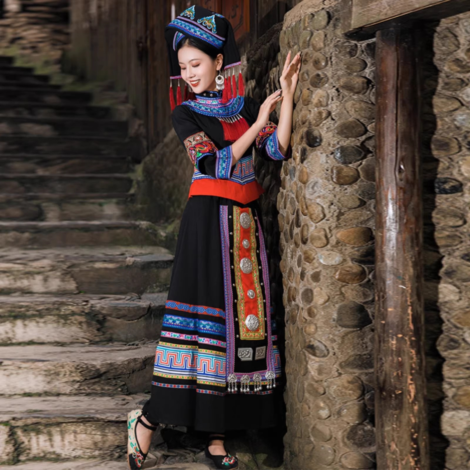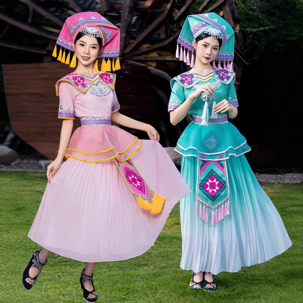 新款广西壮族女少数民族成人三月三少数民族演出服饰长裙旅拍苗族
