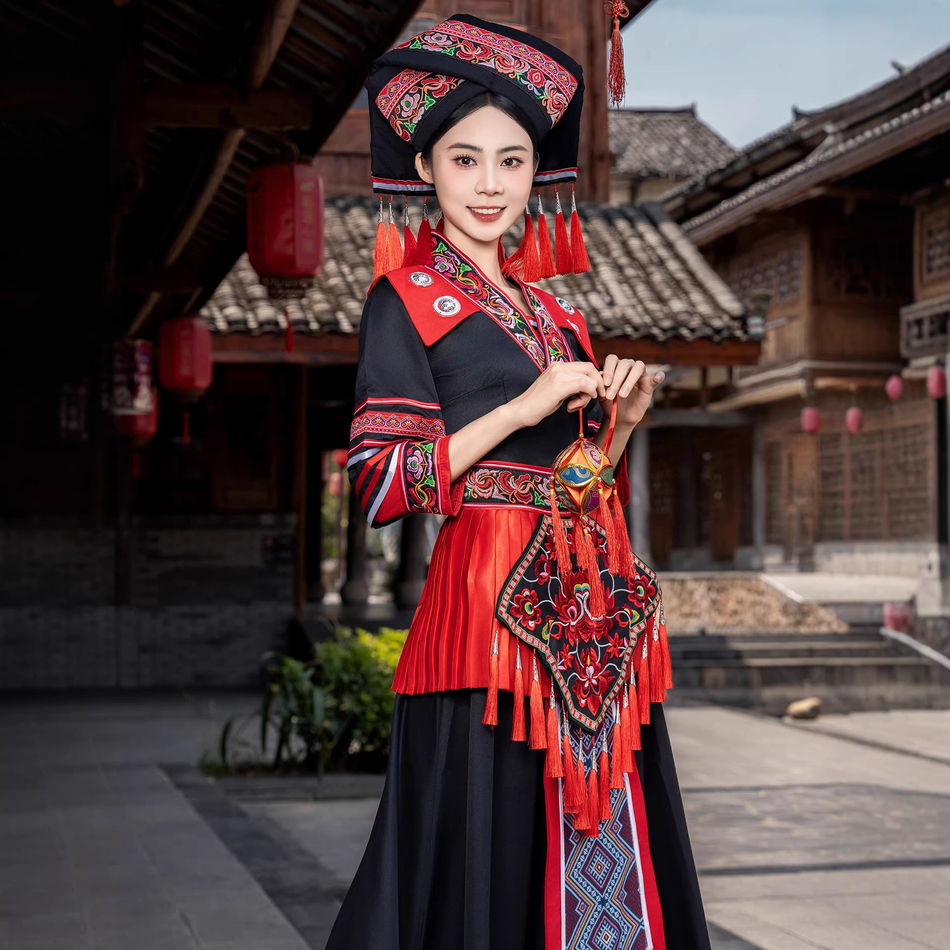 新款广西壮族广西三月壮族服装成人少数民族服饰苗族刺绣舞蹈演出