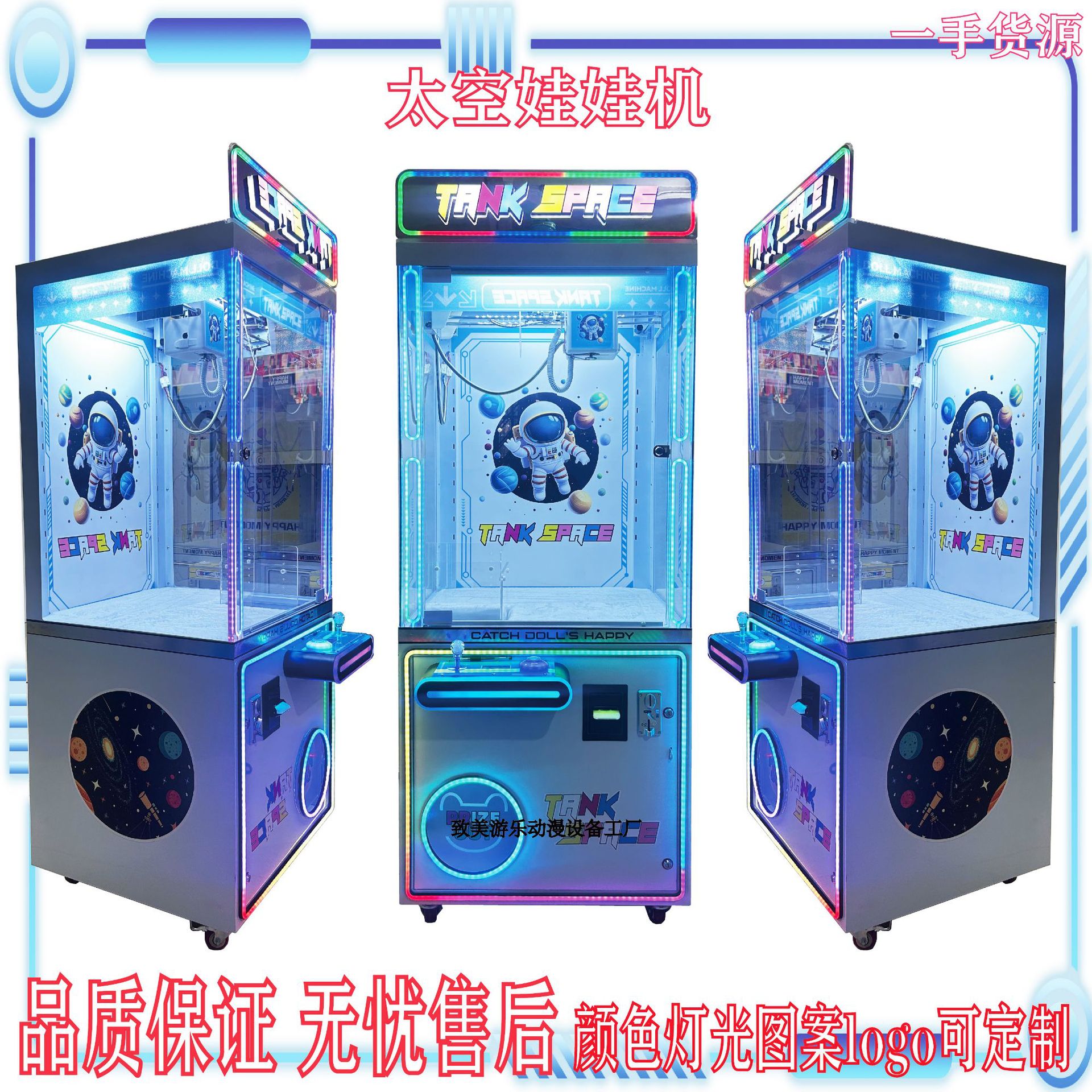 跨境双管跑灯太空娃娃机大型电玩城投币抓娃娃夹盲盒机全透明商用
