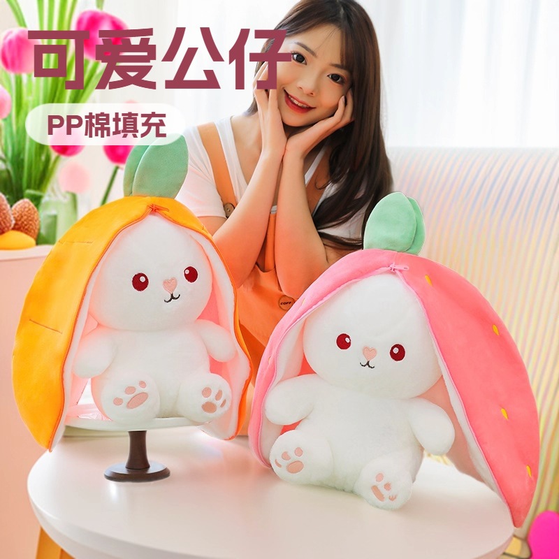 草莓兔子布偶变身小兔子玩偶公仔胡萝卜兔兔毛绒娃娃女孩生日礼物