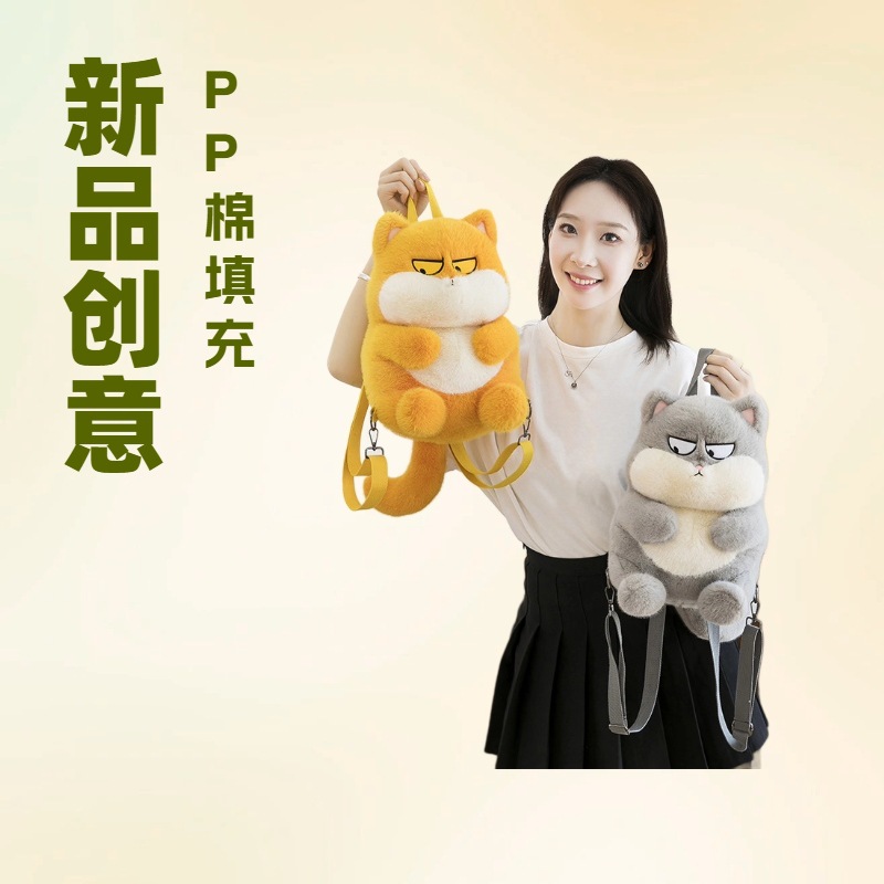 跨境毛绒玩具批发肥猫背包公仔婚礼抛洒礼品抓机娃娃现货灰色黄色