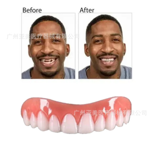 跨境新款微笑牙贴仿真硅胶假牙 美白牙贴上下排美容牙齿覆盖牙套