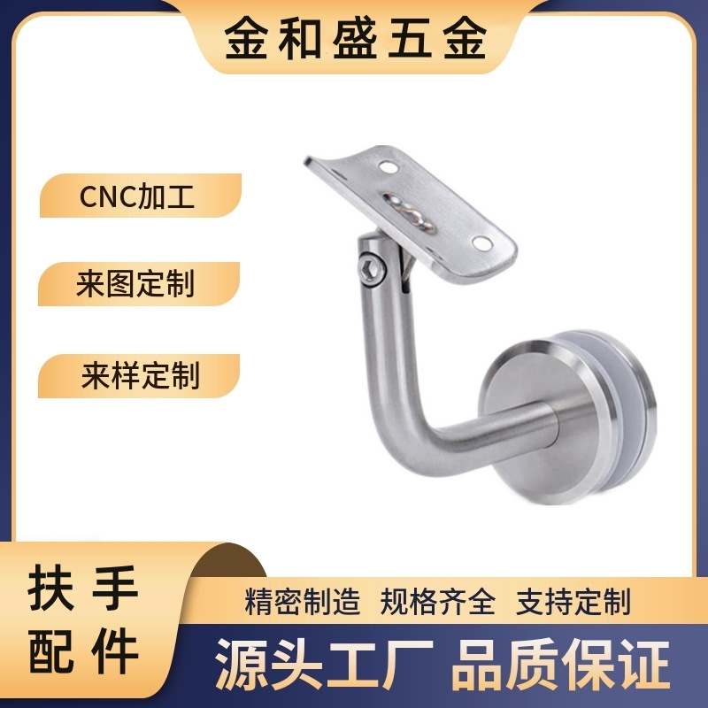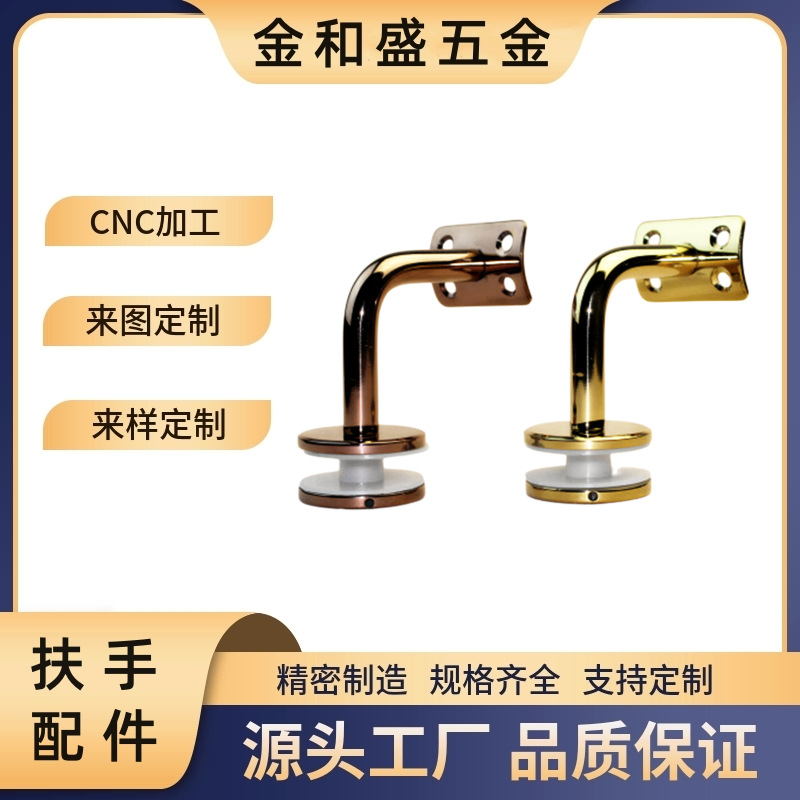 厂家直销金色不锈钢玻璃扶手托架固定楼扶手支架配件七字弯玻璃托