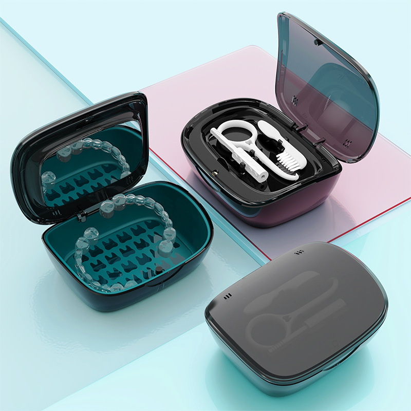 新款双层隐形牙套保持器收纳盒 便携正畸牙齿矫正器磁吸假牙盒子