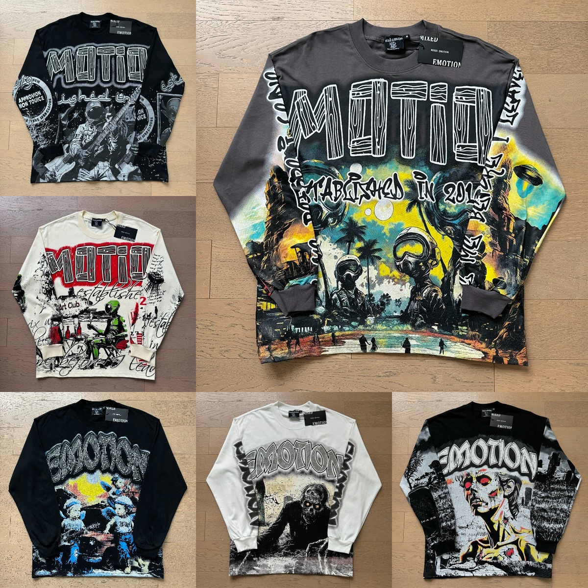美式潮牌MIXED EMOTION满印长袖T恤高街潮流男女春秋季休闲打底衫