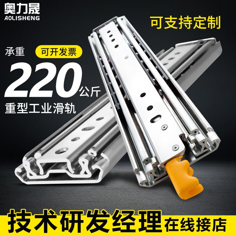 厂家奥力晟76宽重型工业滑轨抽屉轨道房车机柜带锁加厚三节导轨
