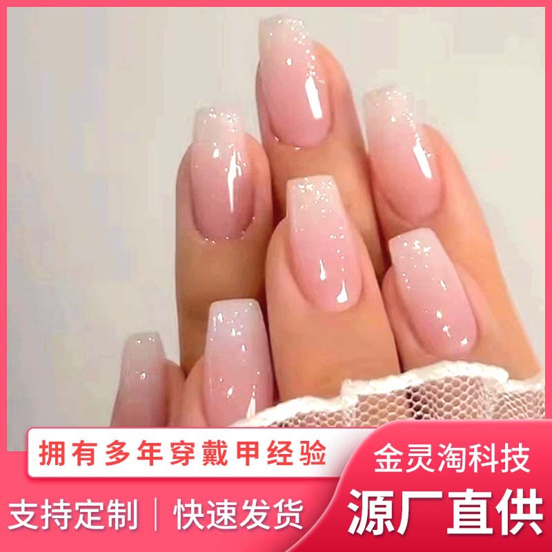 裸色美甲渐变裸色穿戴甲短款百搭肉色美甲温柔气质手工穿戴甲