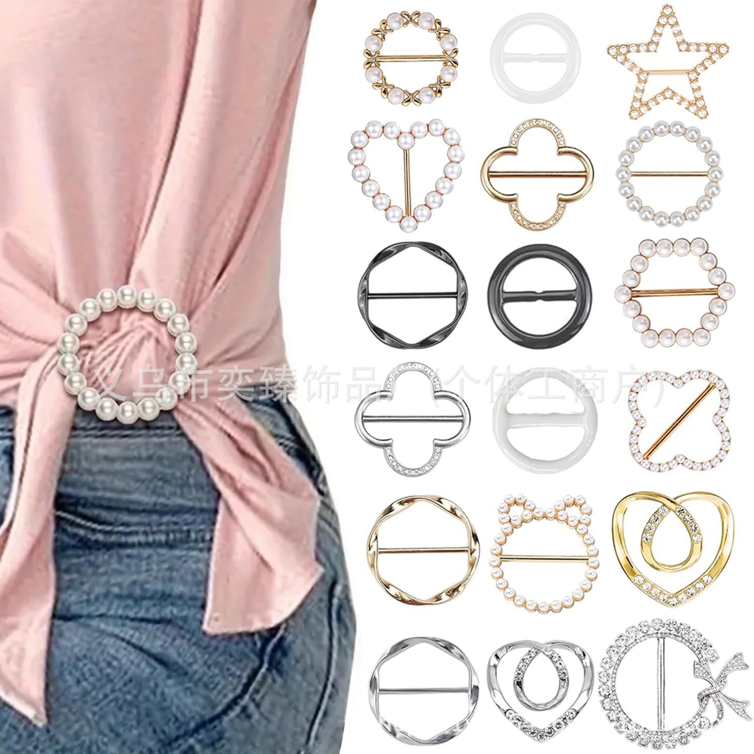 跨境衣角扣打结扣环T恤装饰扣衬衣下摆固定扣珍珠镶钻几何纹