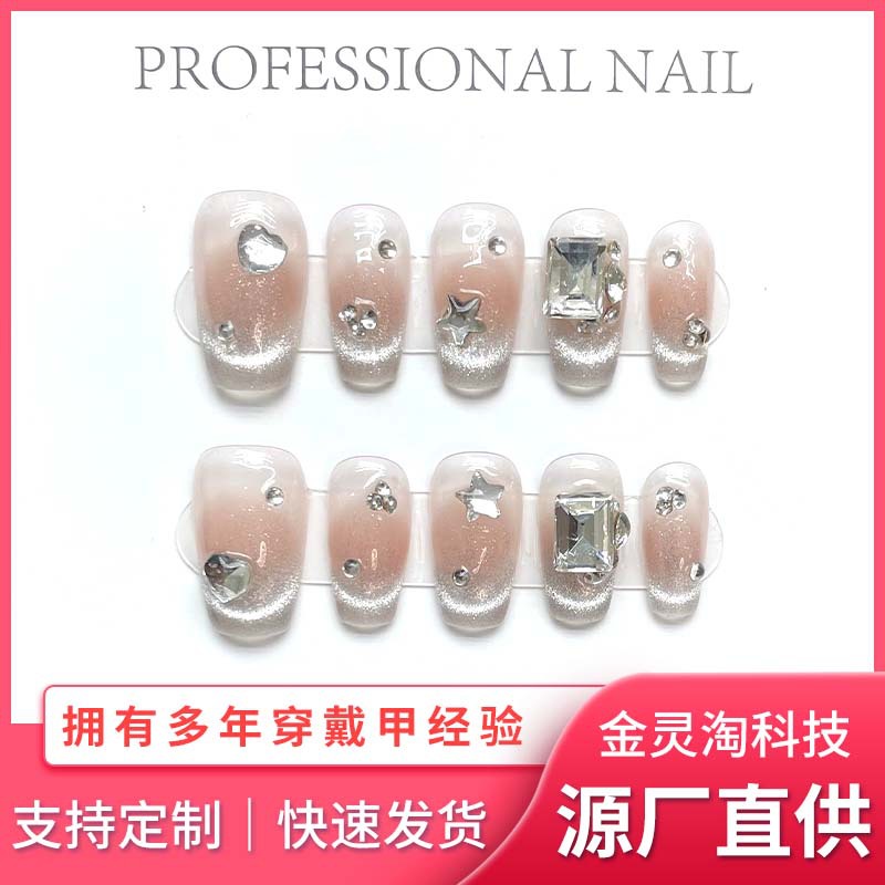 温柔腮红闪钻穿戴甲猫眼穿戴甲轻奢显白爆闪穿戴甲裸色手工穿戴甲