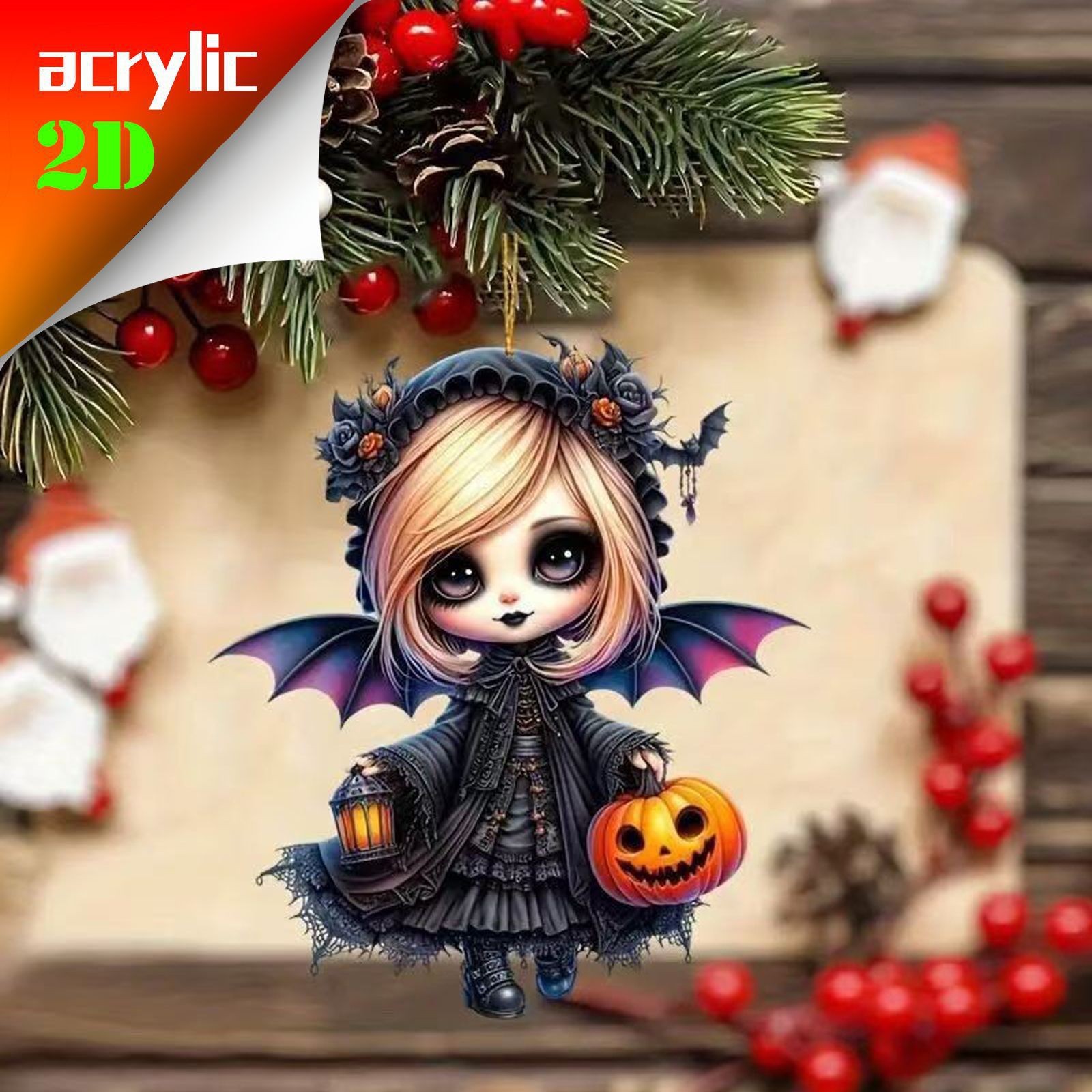 跨境万圣节爆款亚克力平面可爱手提南瓜女巫车载装饰品挂件