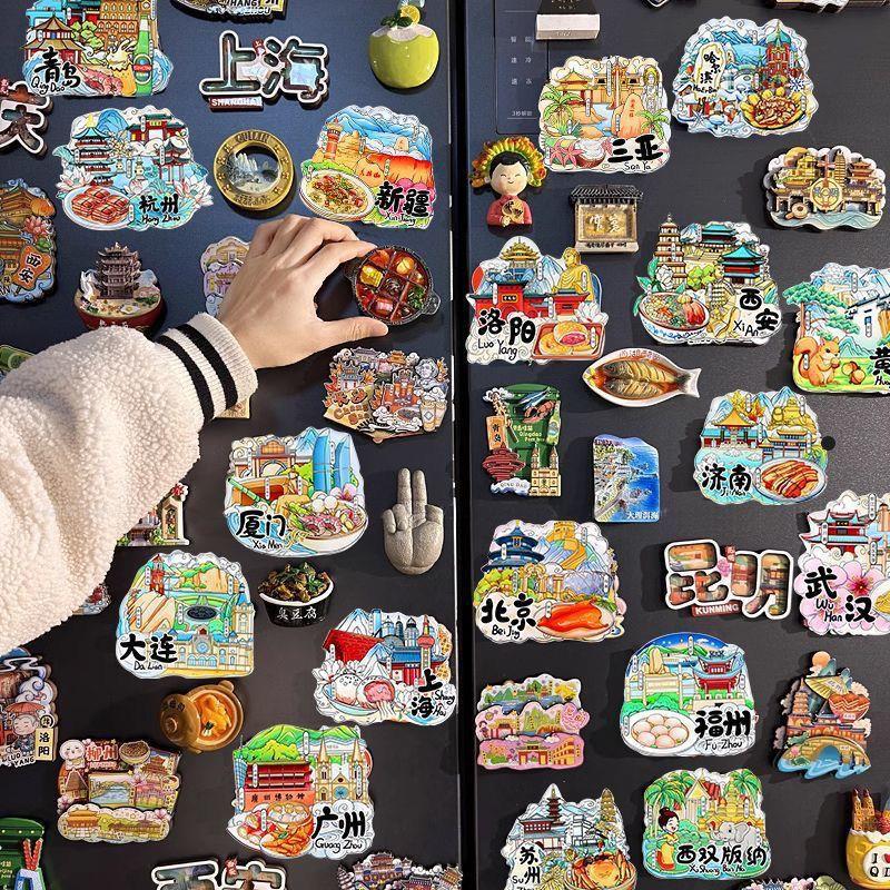 冰箱贴国潮有机玻璃几何图案亚克力城市中国大陆早教留言装饰磁贴