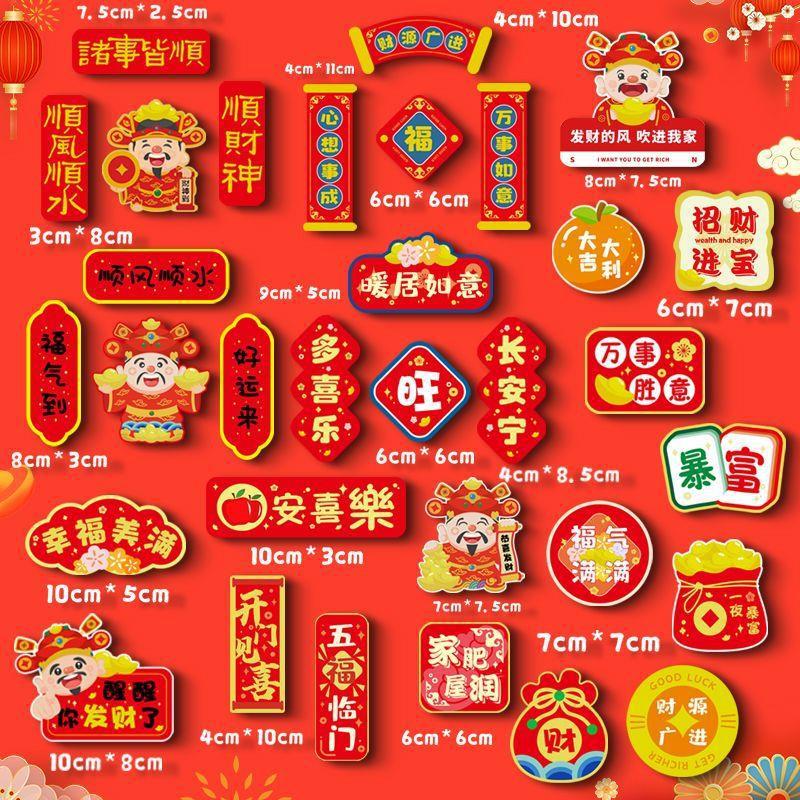 冰箱贴磁吸对联中国风春节新年装饰布置网红喜庆财神卡通创意磁贴